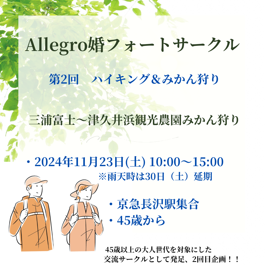 『Allegro婚フォートサークル』は、45歳以上の大人世代を対象にした交流サークルです。